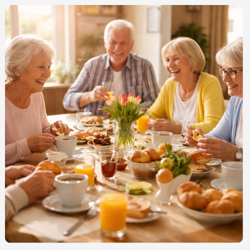 Als Teilzeit oder Tagesgast erleben unsere SeniorInnen eine verlässliche Tagesstruktur mit Orientierung und Sicherheit. Gemeinsame Mahlzeiten, Gespräche, Aktivierung und sinnvolle Beschäftigung fördern Gemeinschaft, Selbstwert und Aktivität im Alltag.